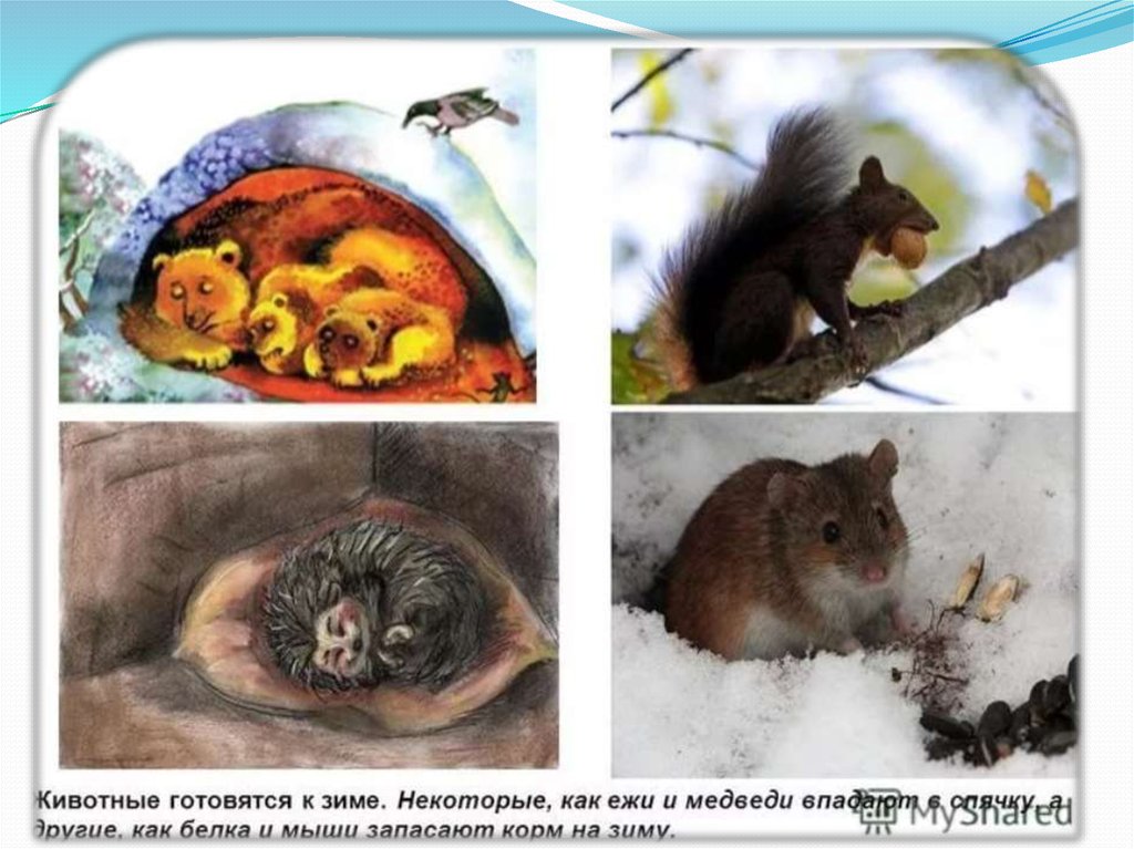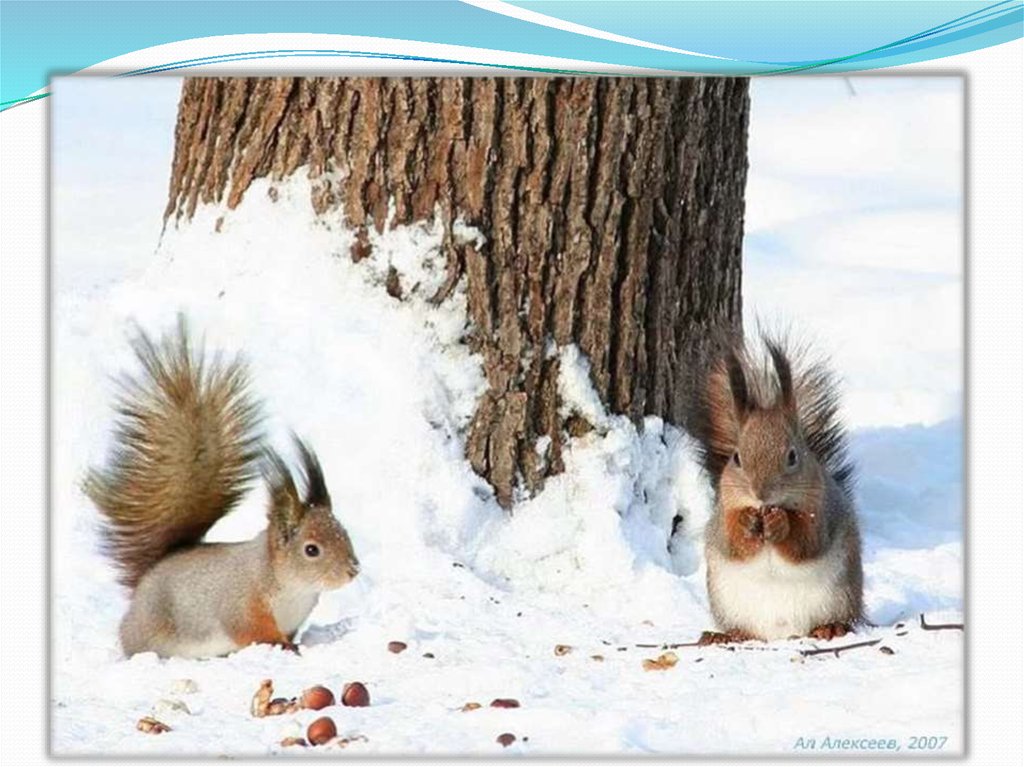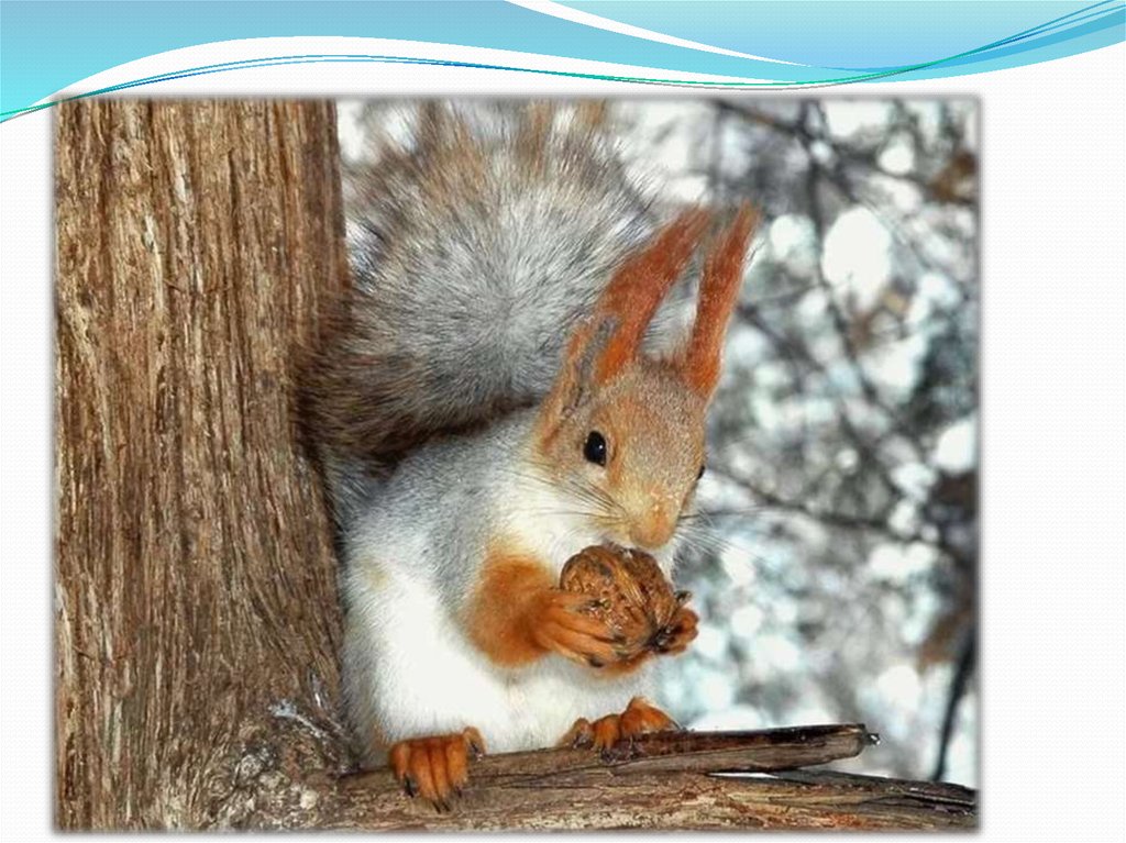 Белка осенью без спешкиПрипасла в дупле берёзы
