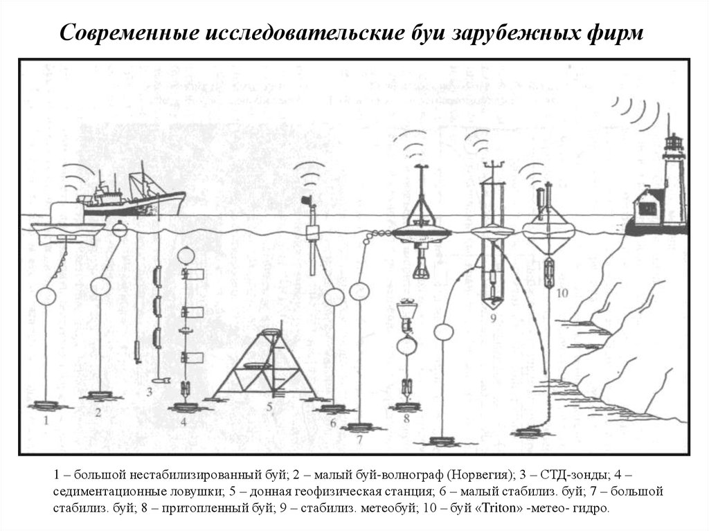 стабилиз. буй; 8 – притопленный буй; 9 – стабилиз. метеобуй; 10 – буй «Triton» -метео- гидро.