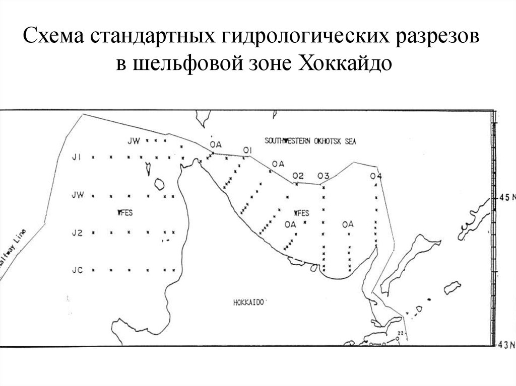 Схема стандартных гидрологических разрезовв шельфовой зоне Хоккайдо