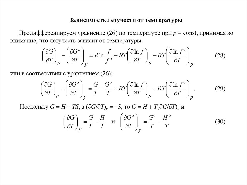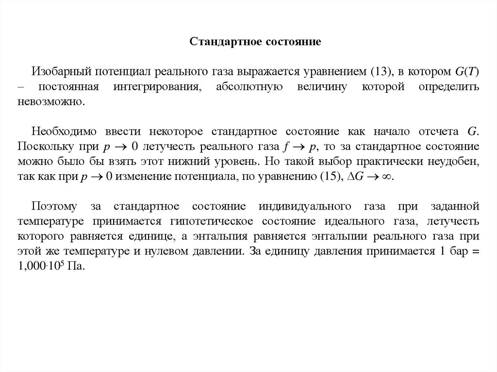 G = G(Т) + RT lnp.