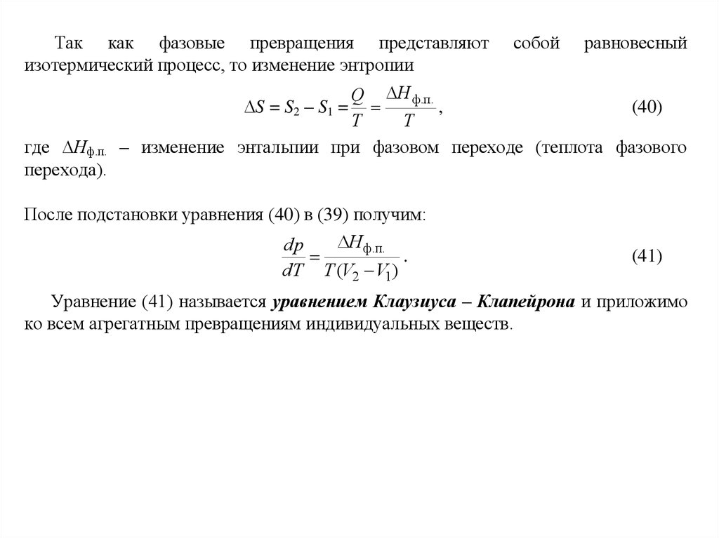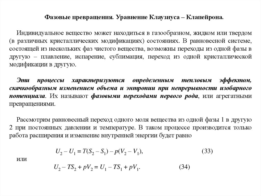 вещества и описываются уравнениями Клаузиуса – Клапейрона для
