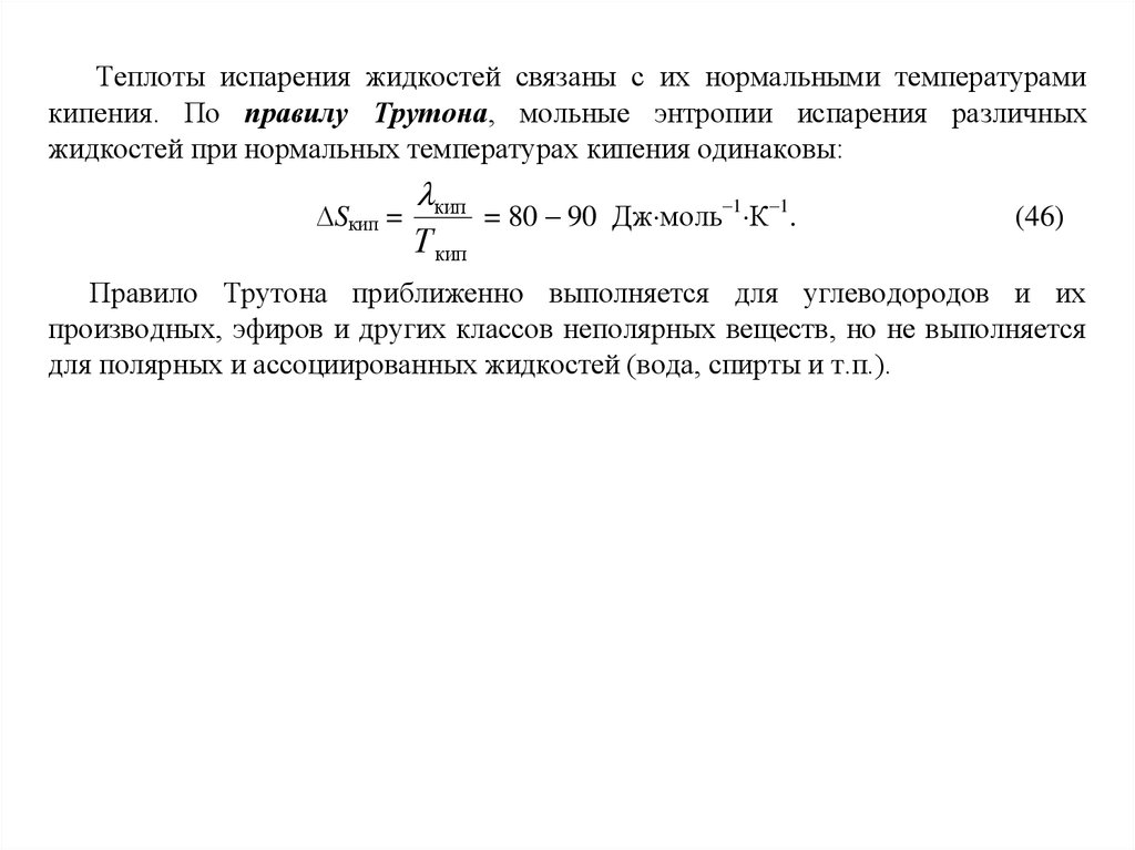 Правило Трутона приближенно выполняется для углеводородов и их
