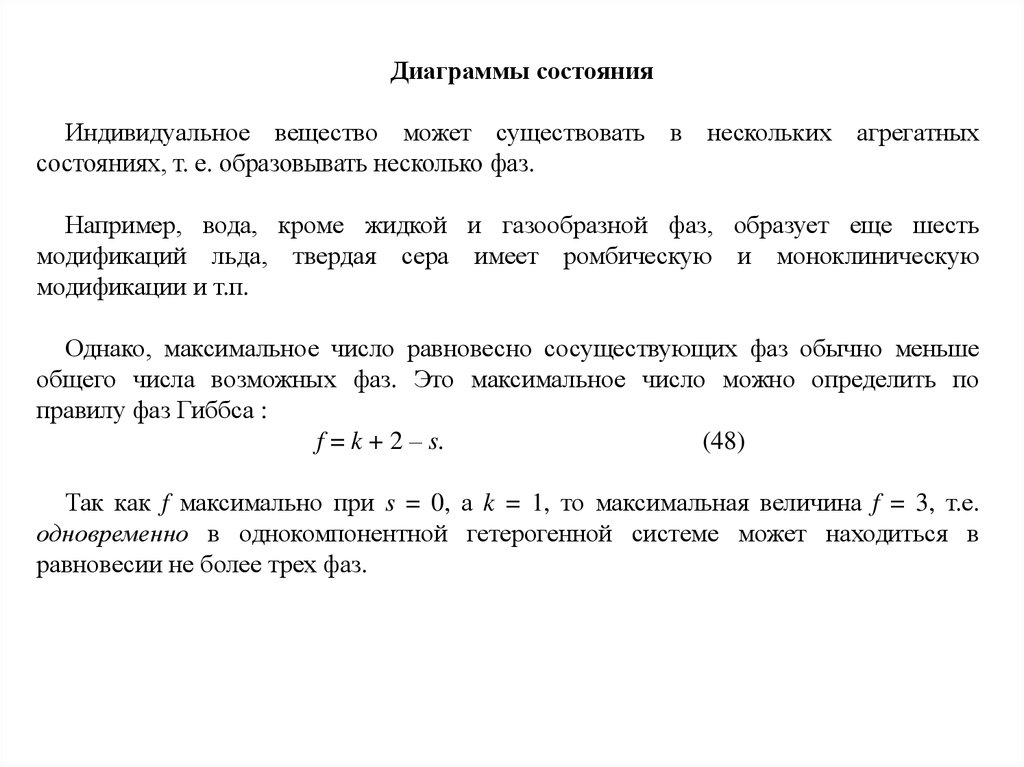 Диаграммы состоянияИндивидуальное вещество может существовать в нескольких агрегатных