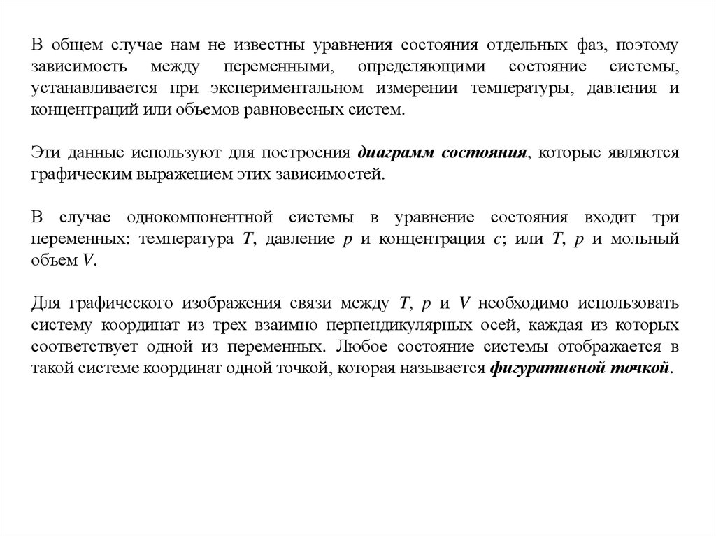В общем случае нам не известны уравнения состояния отдельных фаз, поэтомузависимость между переменными, определяющими состояние системы,