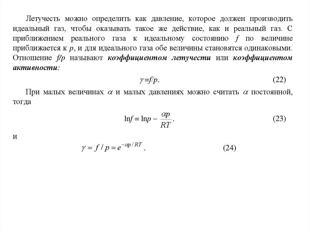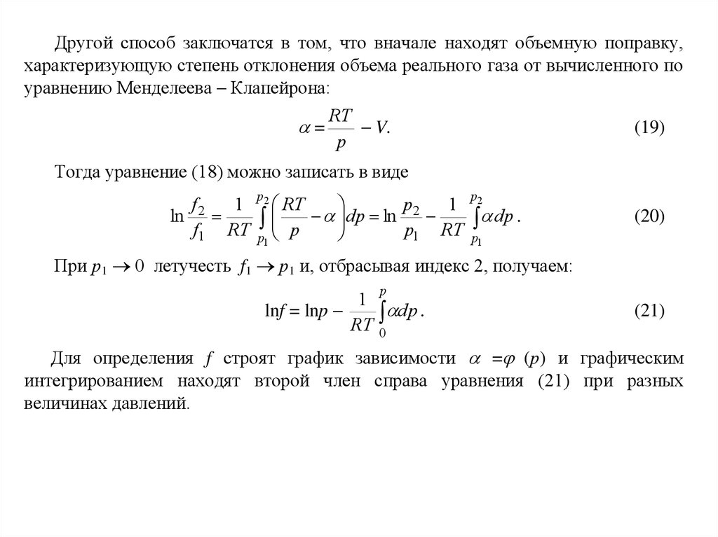температурах. Основой для вычисления летучести являются уравнения (13) и (14).
