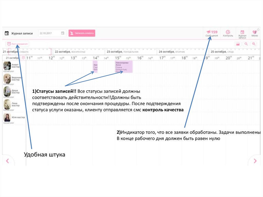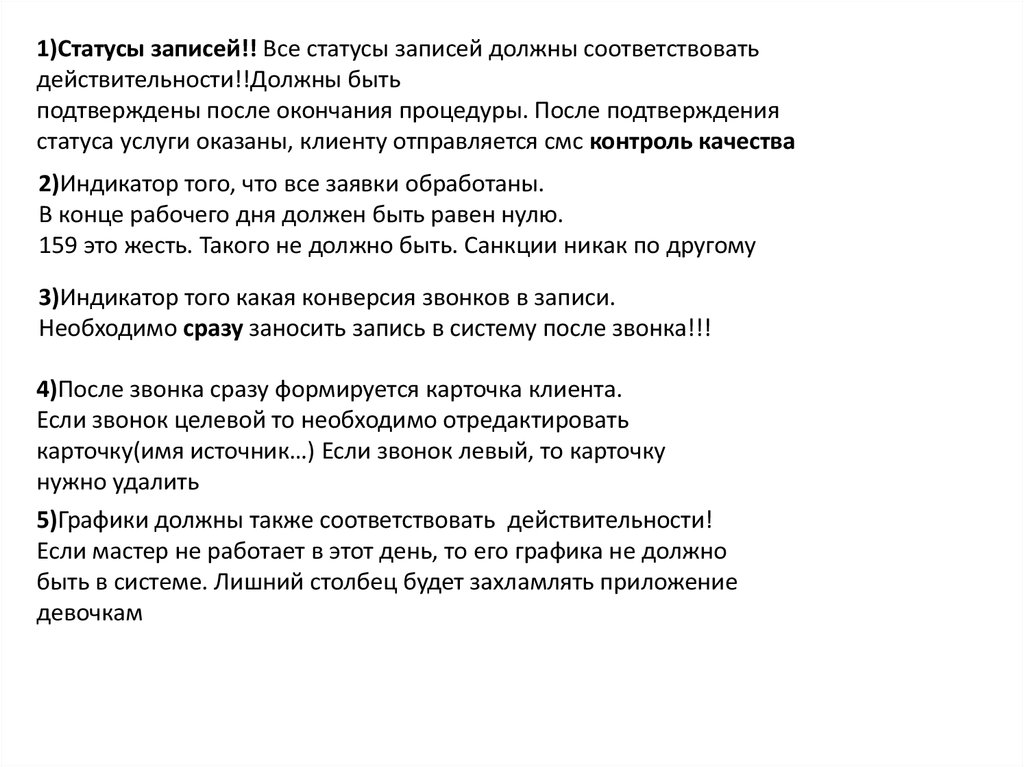 1)Статусы записей!! Все статусы записей должны соответствоватьдействительности!!Должны быть