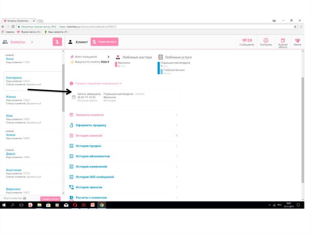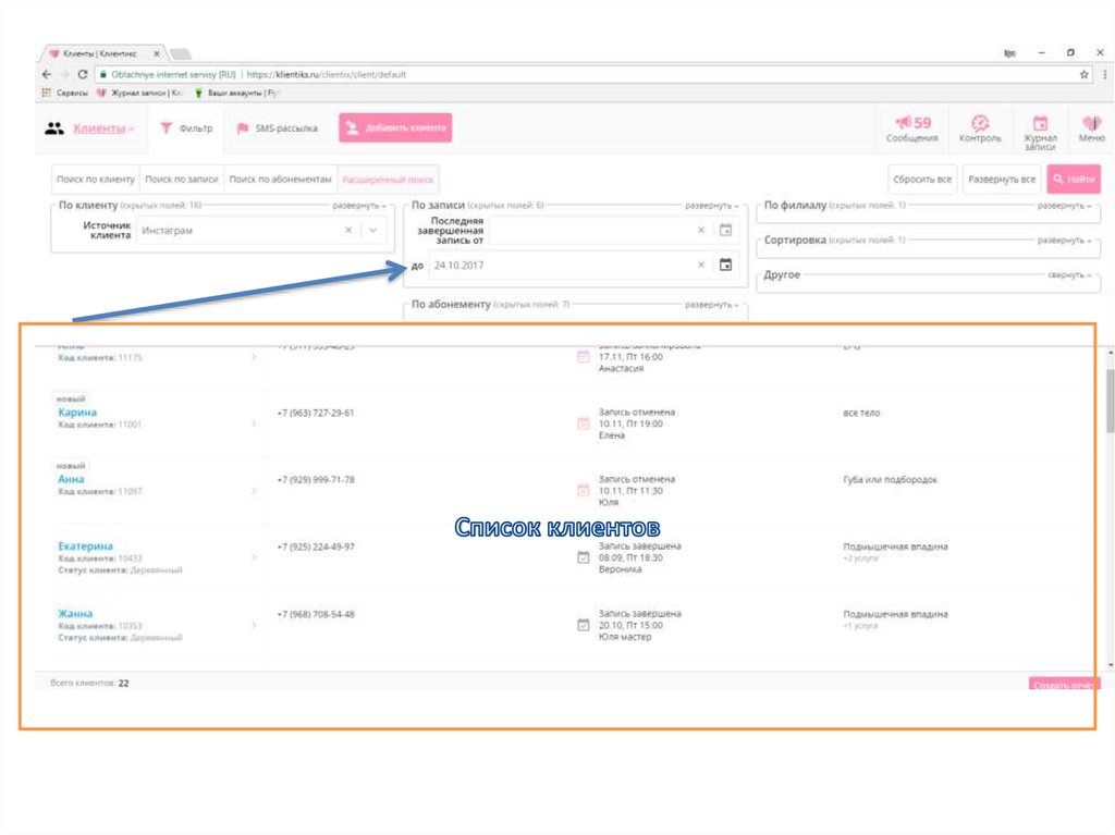 статуса услуги оказаны, клиенту отправляется смс контроль качества