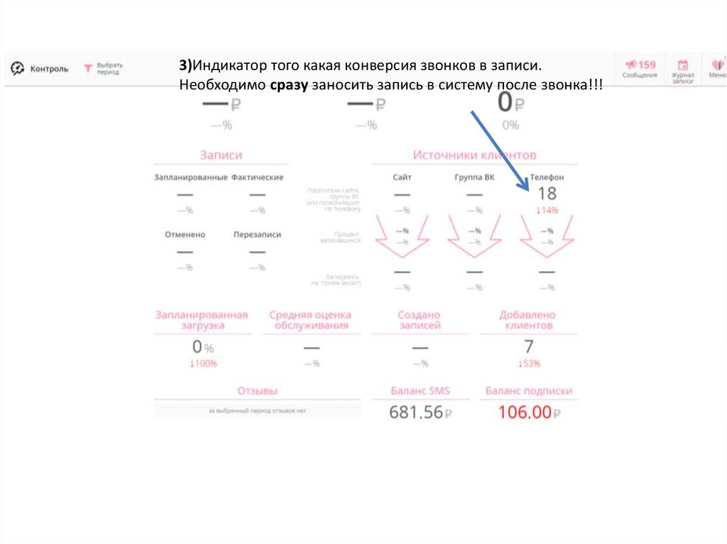 3)Индикатор того какая конверсия звонков в записи.Необходимо сразу заносить запись в систему после звонка!!!