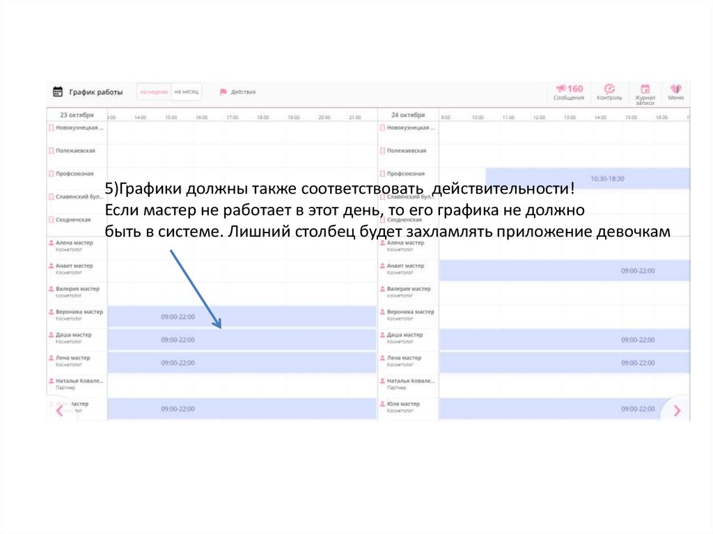 5)Графики должны также соответствовать действительности!Если мастер не работает в этот день, то его графика не должно