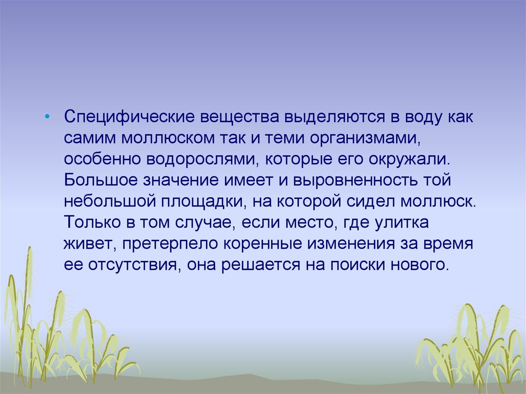 • Специфические вещества выделяются в воду каксамим моллюском так и теми организмами,