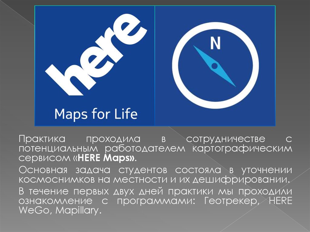 HERE — картографический сервис, используется вмногочисленных пакетах программного обеспечения,