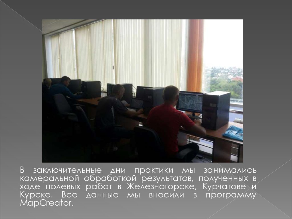 В заключительные дни практики мы занималиськамеральной обработкой результатов, полученных в