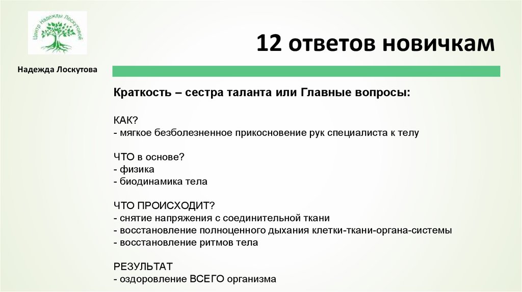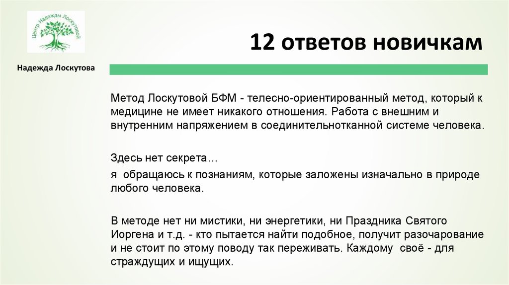 Метод Лоскутовой БФМ - телесно-ориентированный метод, который к