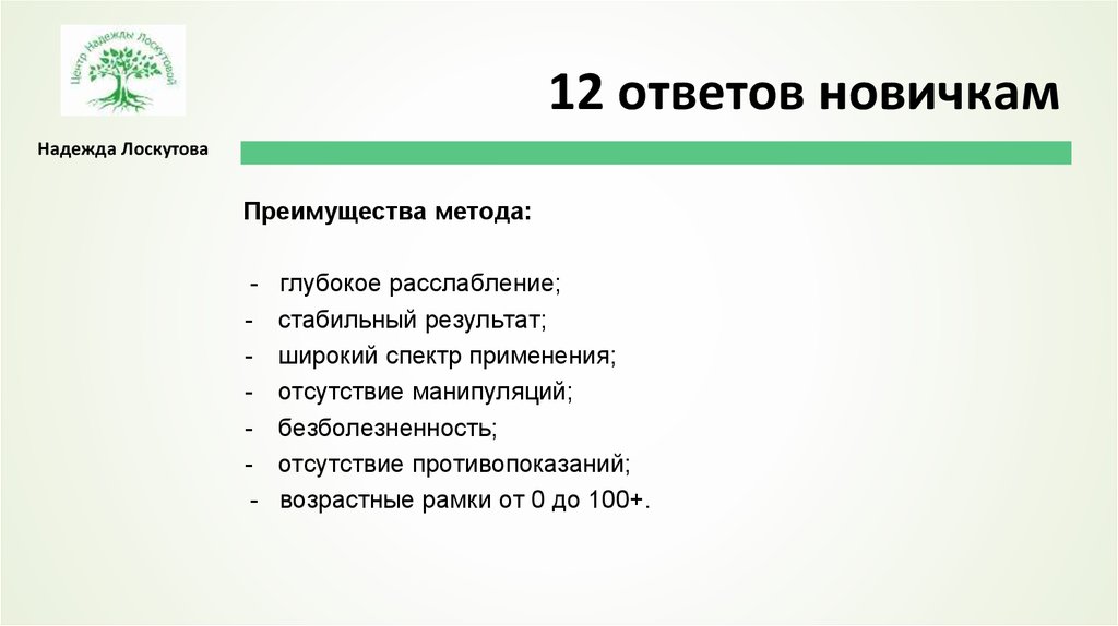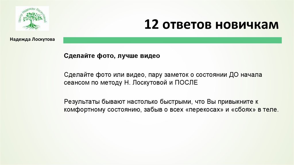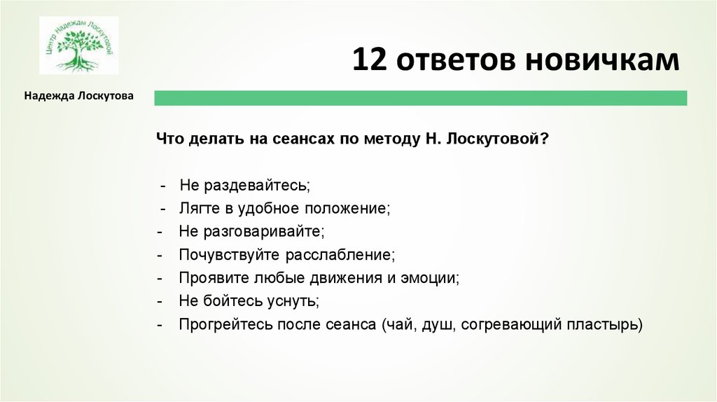 сеансом по методу Н. Лоскутовой и ПОСЛЕ