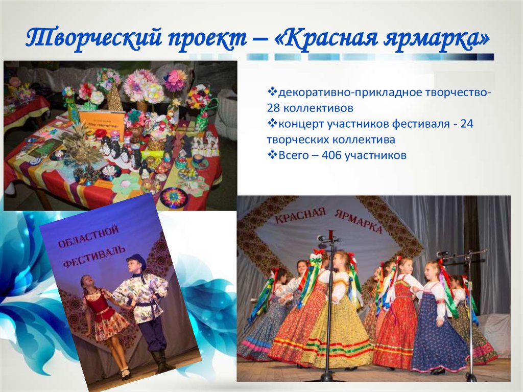 Творческий проект – «Красная ярмарка»декоративно-прикладное творчество28 коллективов