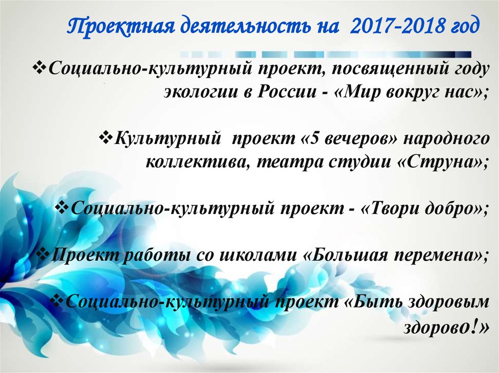 Проектная деятельность на 2017-2018 годСоциально-культурный проект, посвященный году