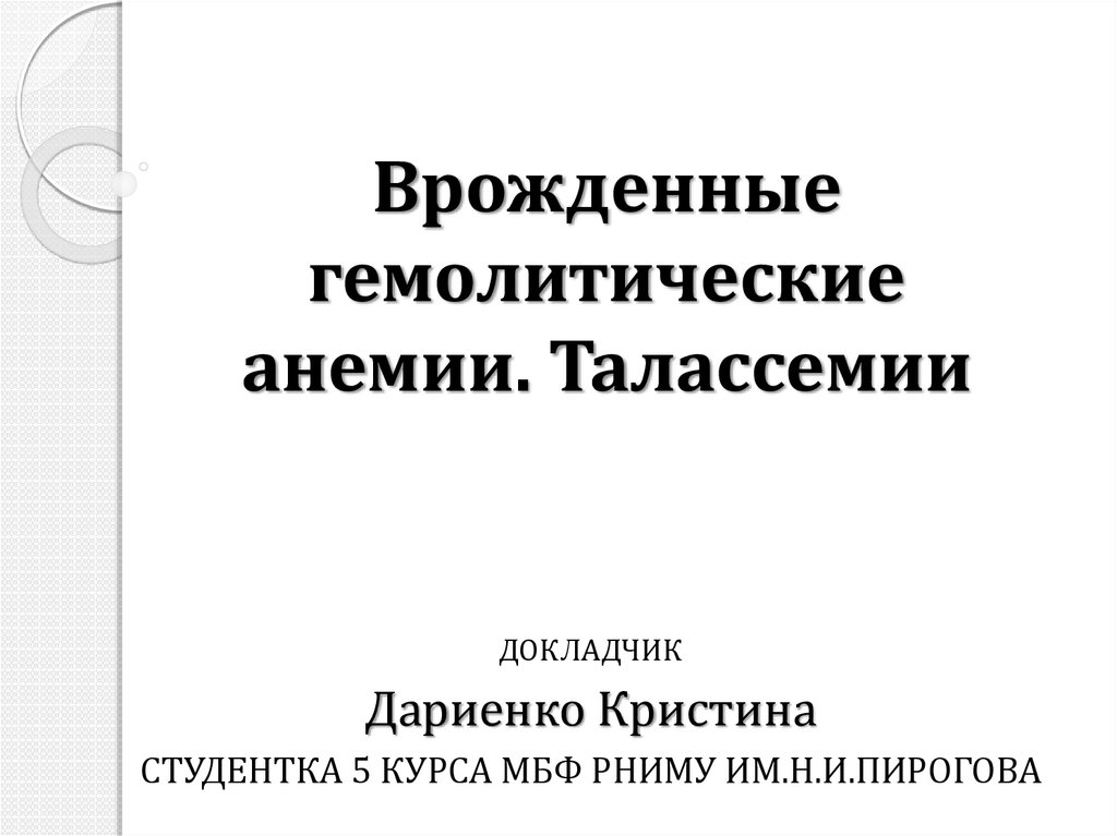 6. Врожденные гемолитические анемии (ВГА). Талассемии
