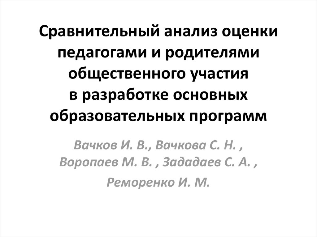 1. Сравнительный анализ оценки педагогами и родителями общественного участия в разработке основных образовательных программ