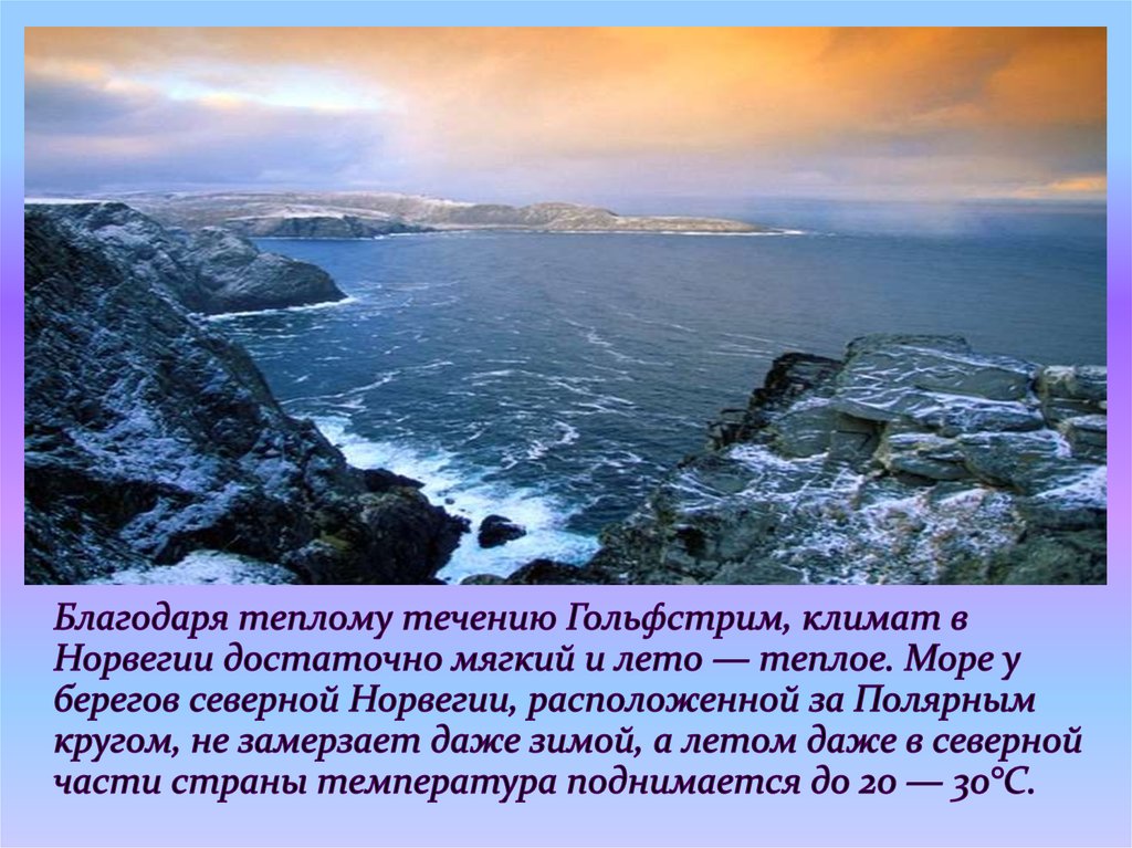 4. -В Норвегии невероятно изменчивый климат. Туман, солнце, резкий ветер, дождь, и снова туман могут сменяться с поразительной