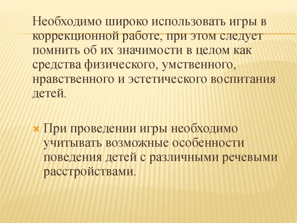 Необходимо широко использовать игры вкоррекционной работе, при этом следует
