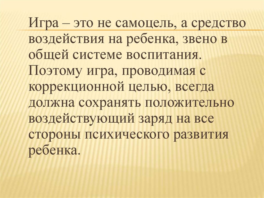 Игра – это не самоцель, а средствовоздействия на ребенка, звено в