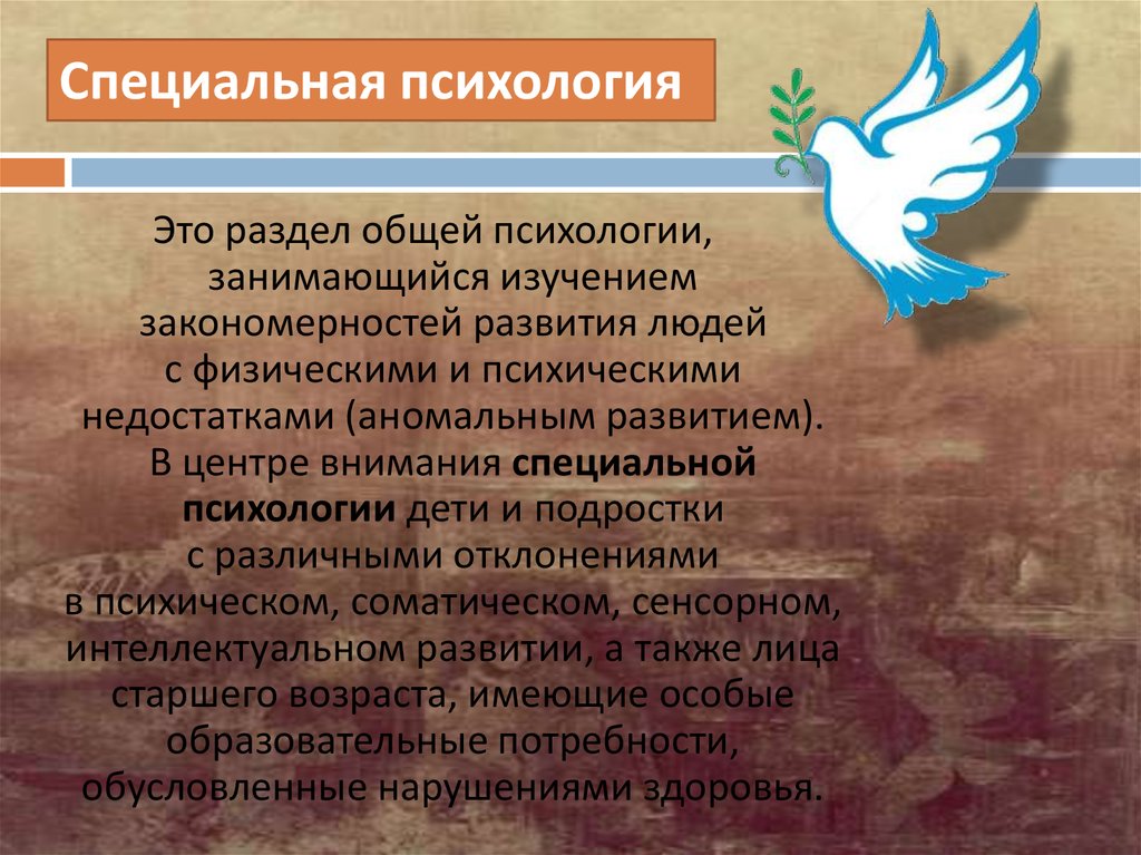 Специальная психологияЭто раздел общей психологии,