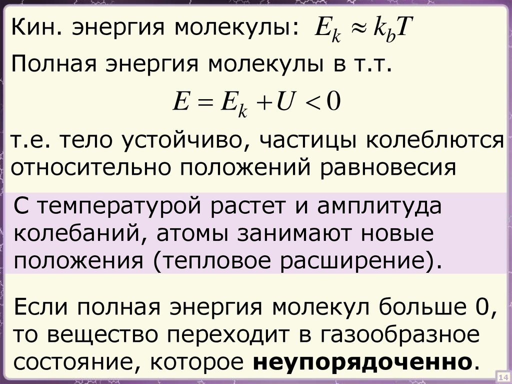 Полная энергия молекул E ≤ 0 (+,иногда)