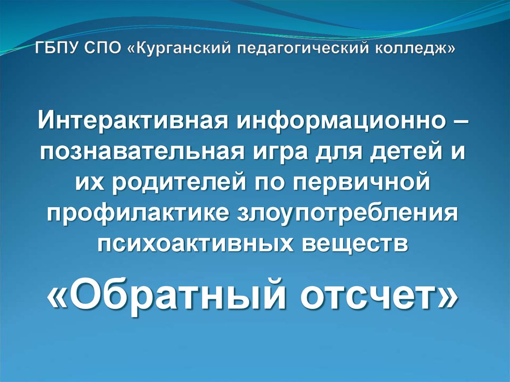 Интерактивная игра для детей и их родителей по первичной профилактике злоупотребления психоактивных веществ «Обратный отсчет»