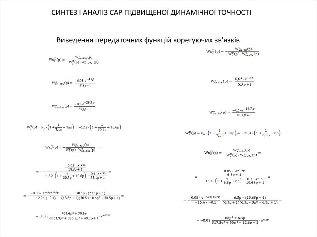СИНТЕЗ І АНАЛІЗ САР ПІДВИЩЕНОЇ ДИНАМІЧНОЇ ТОЧНОСТІВиведення передаточних функцій корегуючих зв'язків