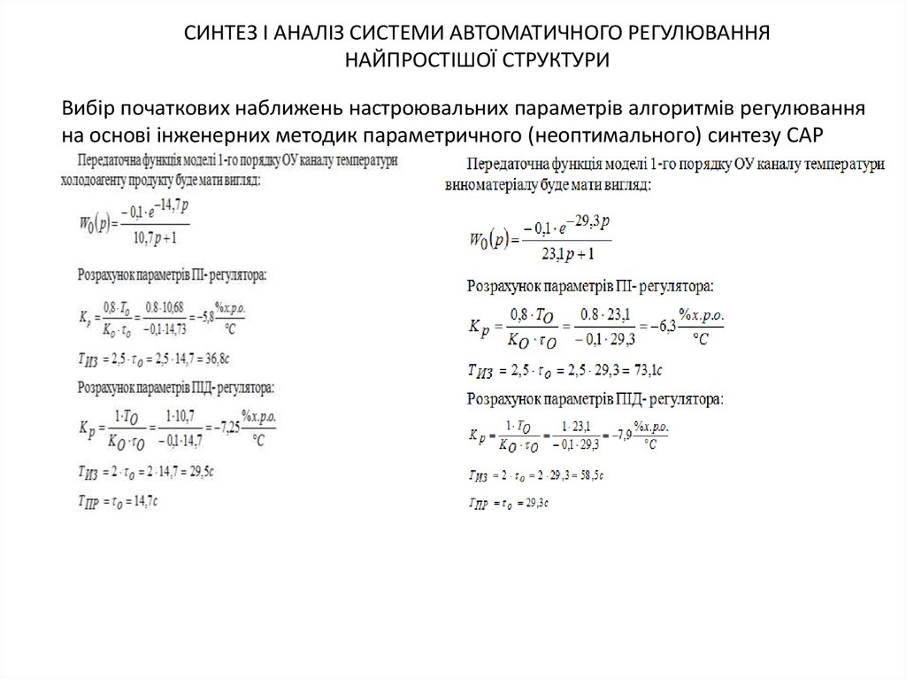 СИНТЕЗ І АНАЛІЗ СИСТЕМИ АВТОМАТИЧНОГО РЕГУЛЮВАННЯНАЙПРОСТІШОЇ СТРУКТУРИ