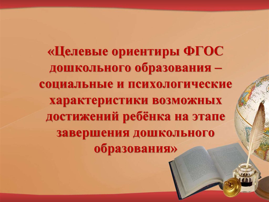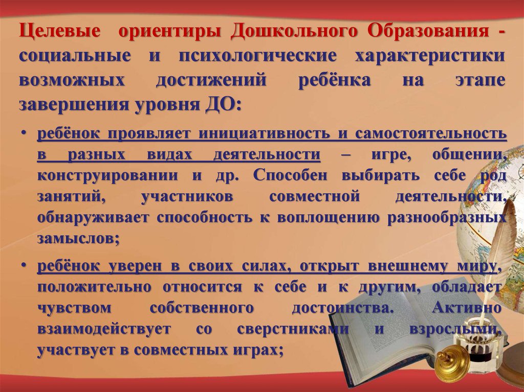 Целевые ориентиры Дошкольного Образования социальные и психологические характеристикивозможных