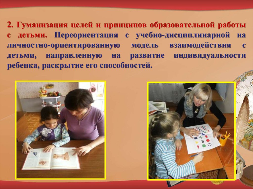 2. Гуманизация целей и принципов образовательной работыс детьми. Переориентация с учебно-дисциплинарной на