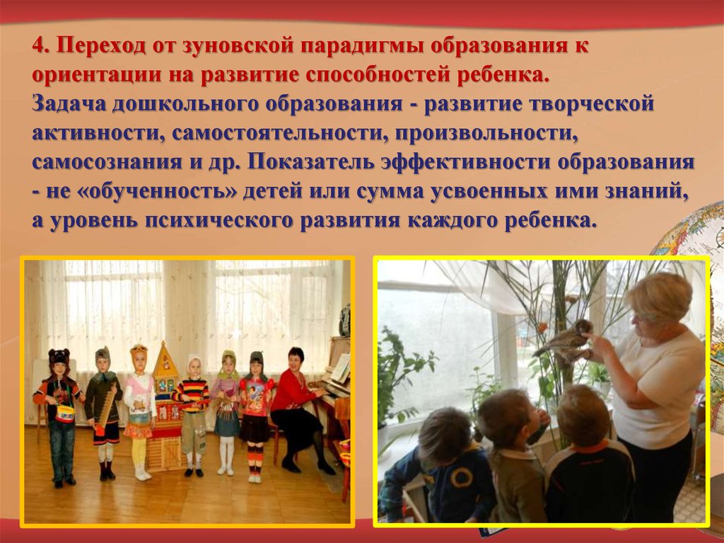 4. Переход от зуновской парадигмы образования кориентации на развитие способностей ребенка.