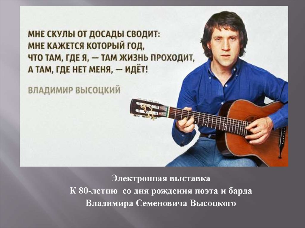 Электронная выставка К 80-летию со дня рождения поэта и барда Владимира Семеновича Высоцкого