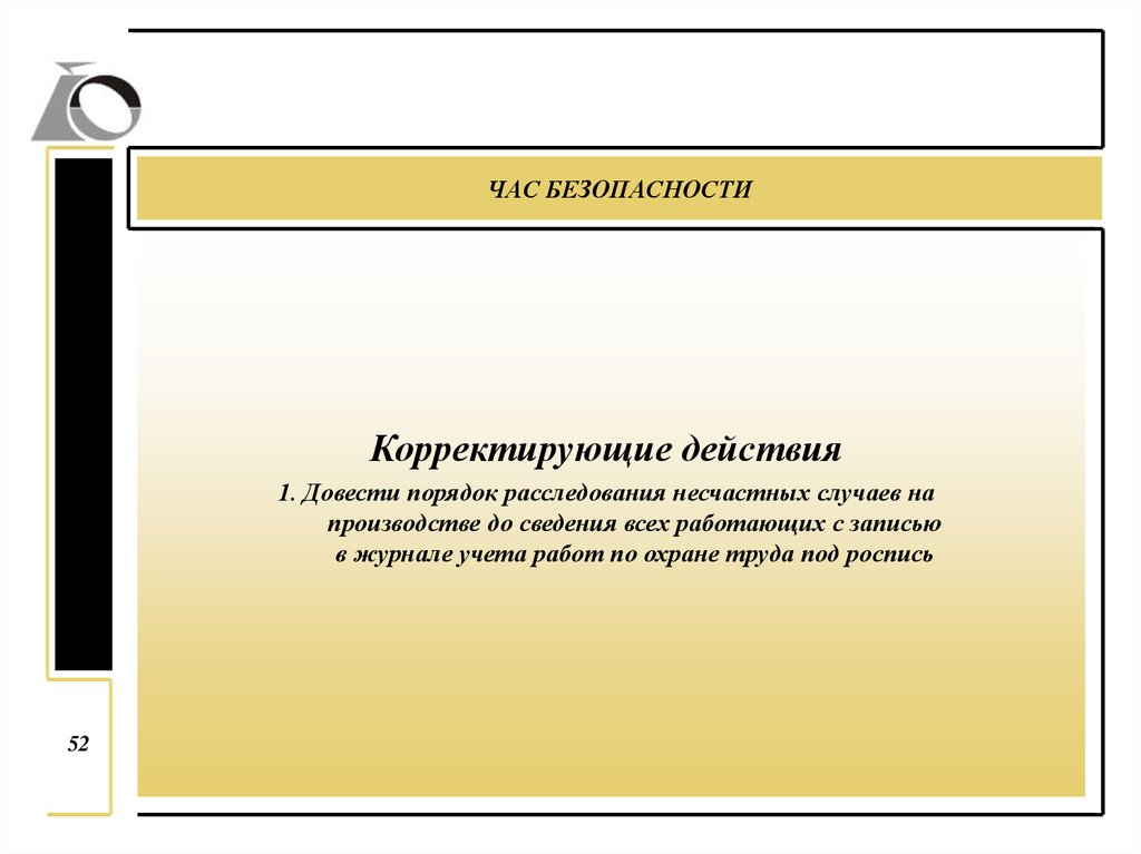 ЧАС БЕЗОПАСНОСТИКорректирующие действия