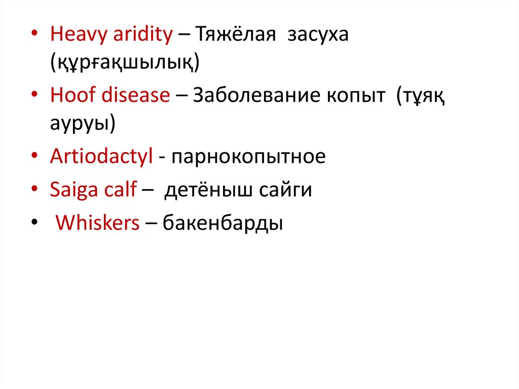 • Heavy aridity – Тяжёлая засуха(құрғақшылық)