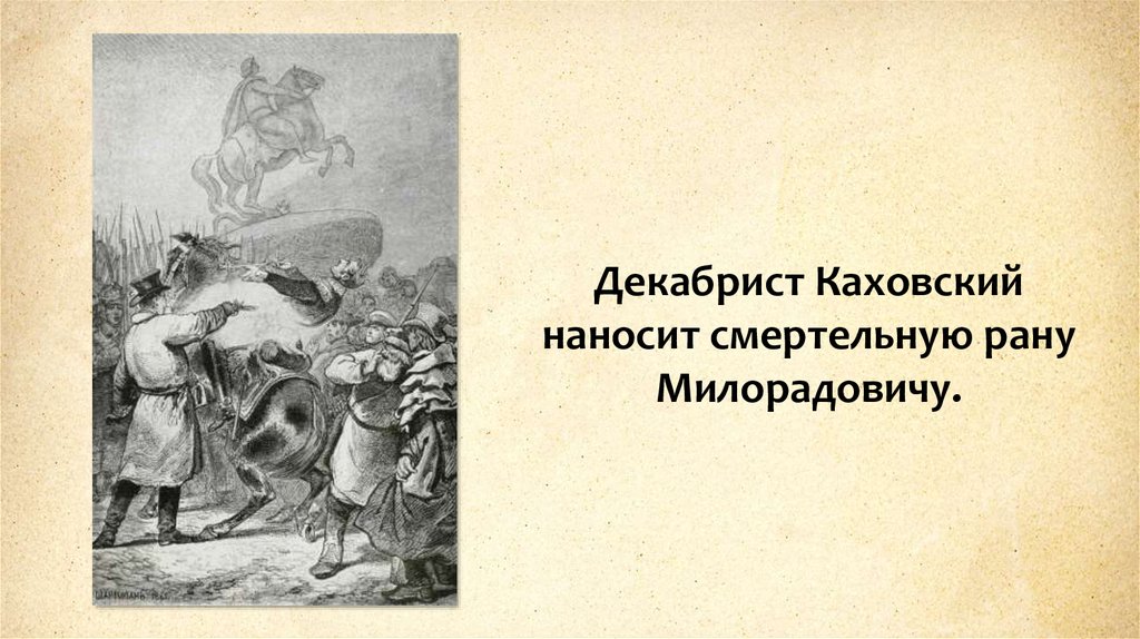 Декабрист Каховскийнаносит смертельную рану