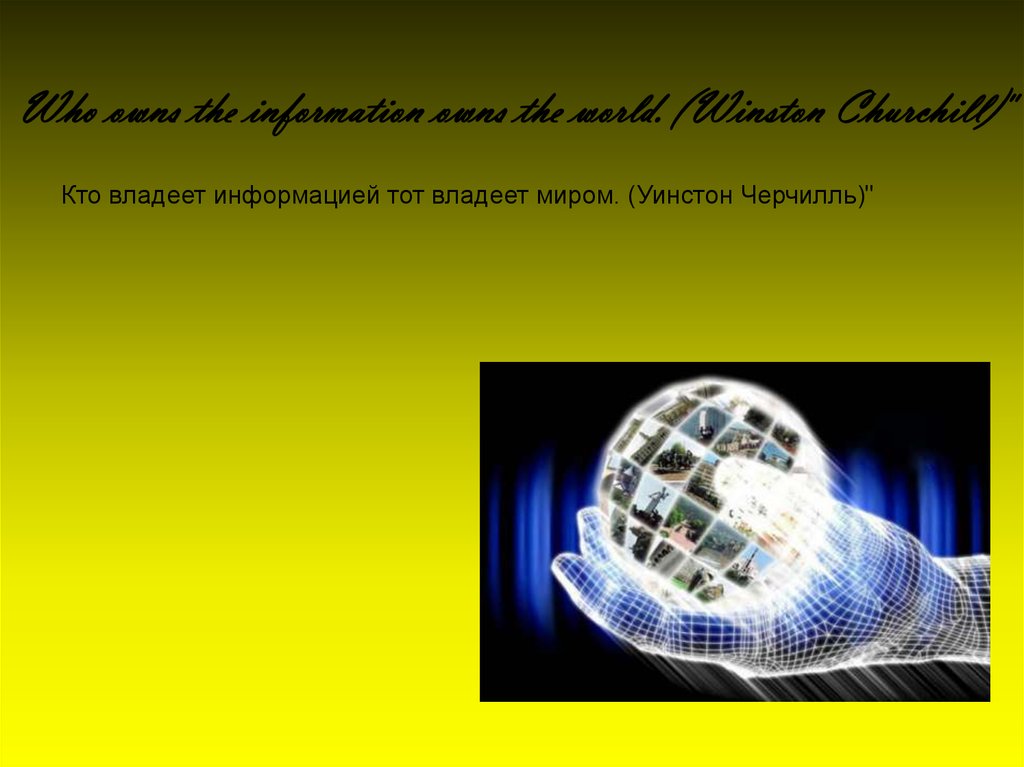 Who owns the information owns the world. (Winston Churchill)"Кто владеет информацией тот владеет миром. (Уинстон Черчилль)"