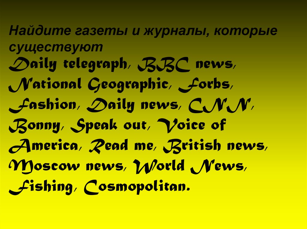 Найдите газеты и журналы, которыесуществуют