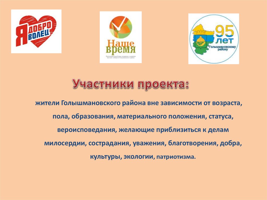 Проект «95 добрых дел Голышмановскому району»– это проект по консолидации (объединению) общества