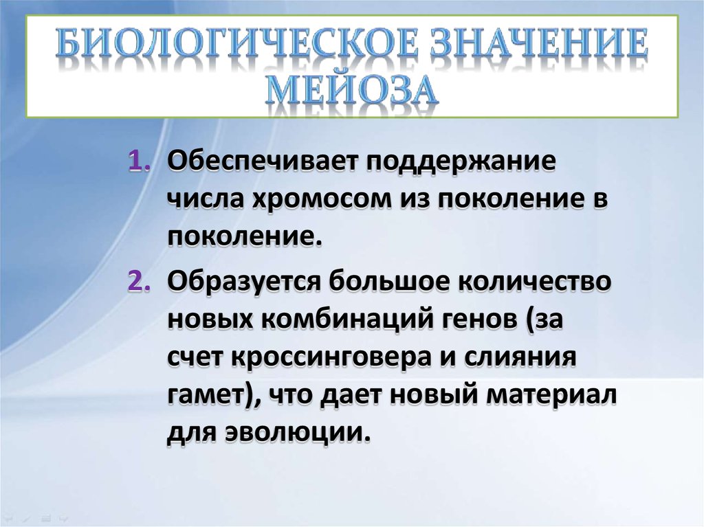 1. Обеспечивает поддержаниечисла хромосом из поколение в