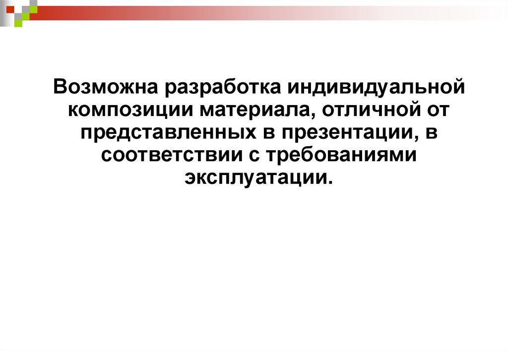 Возможна разработка индивидуальнойкомпозиции материала, отличной от