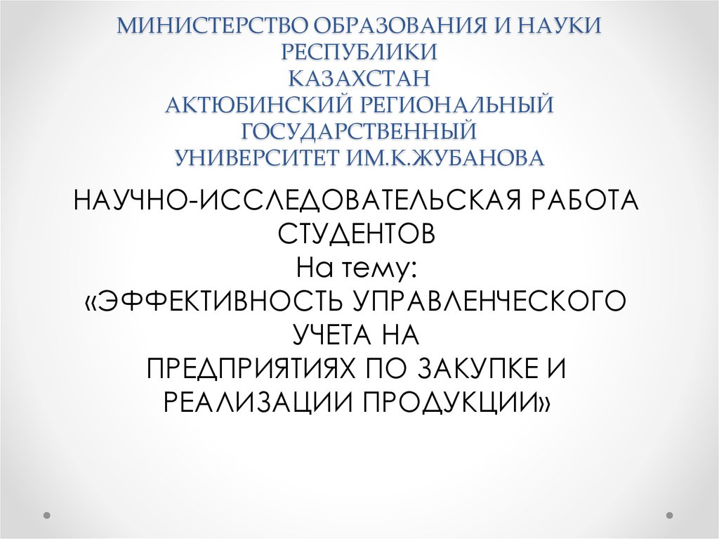 1. МИНИСТЕРСТВО ОБРАЗОВАНИЯ И НАУКИ РЕСПУБЛИКИ КАЗАХСТАН АКТЮБИНСКИЙ РЕГИОНАЛЬНЫЙ ГОСУДАРСТВЕННЫЙ УНИВЕРСИТЕТ ИМ.К.ЖУБАНОВА