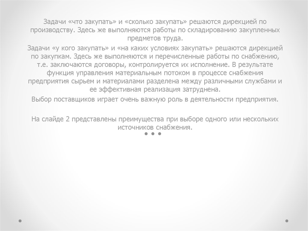 Задачи «у кого закупать» и «на каких условиях закупать» решаются дирекцией