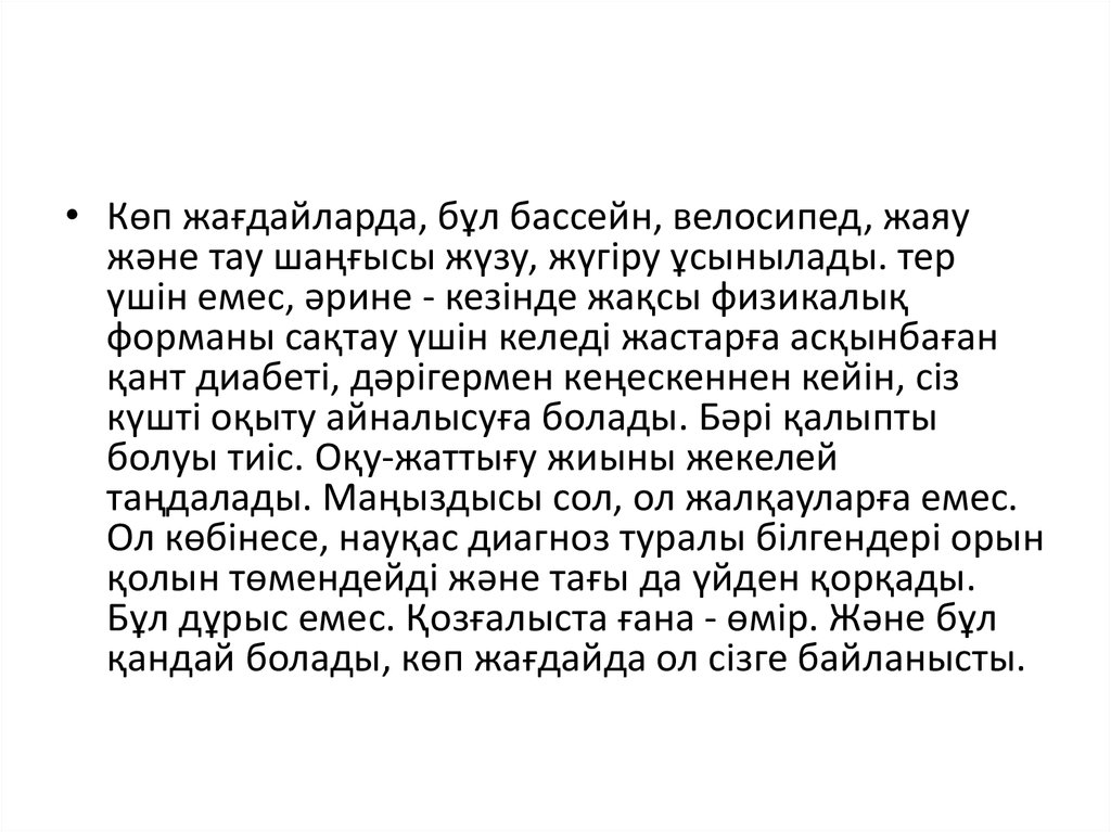 • физикалық жаттығуларды үнемі жасап отыру керек