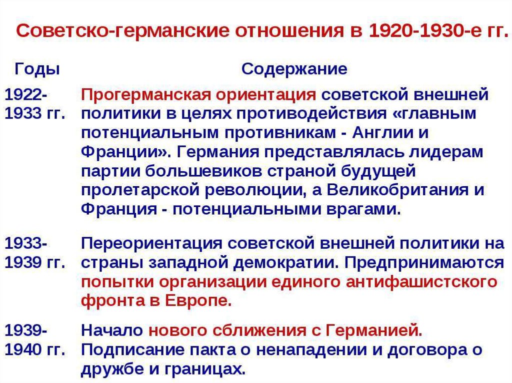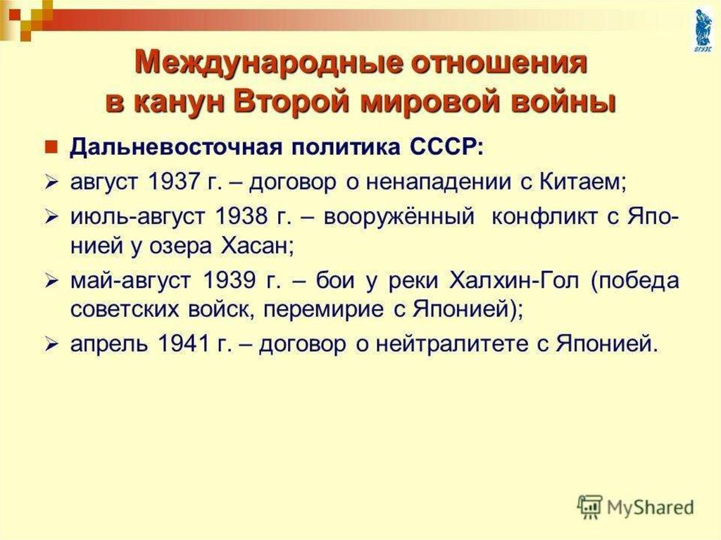 Внешняя политика СССР в 1930 годы и накануне Великой Отечественной войны