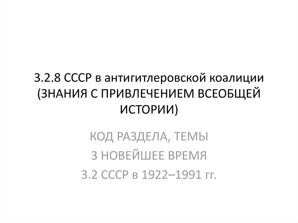 3.2.8 СССР в антигитлеровской коалиции (ЗНАНИЯ С ПРИВЛЕЧЕНИЕМ ВСЕОБЩЕЙ ИСТОРИИ)