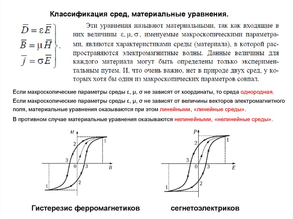 В противном случае материальные уравнения оказываются нелинейными, «нелинейные среды».
