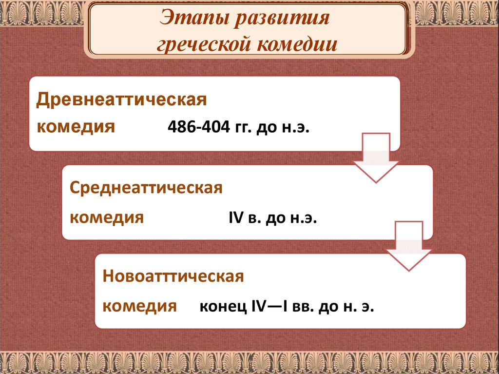 Этапы развитиягреческой комедии