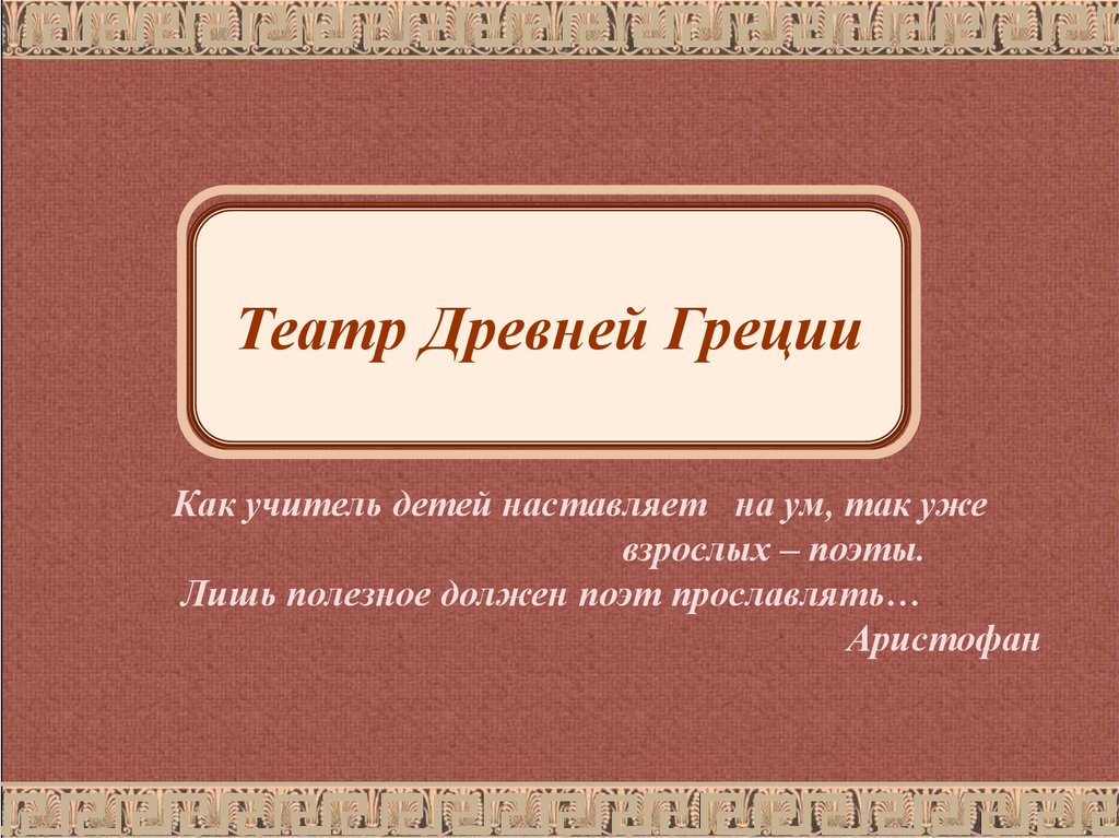 Театр Древней ГрецииКак учитель детей наставляет на ум, так уже